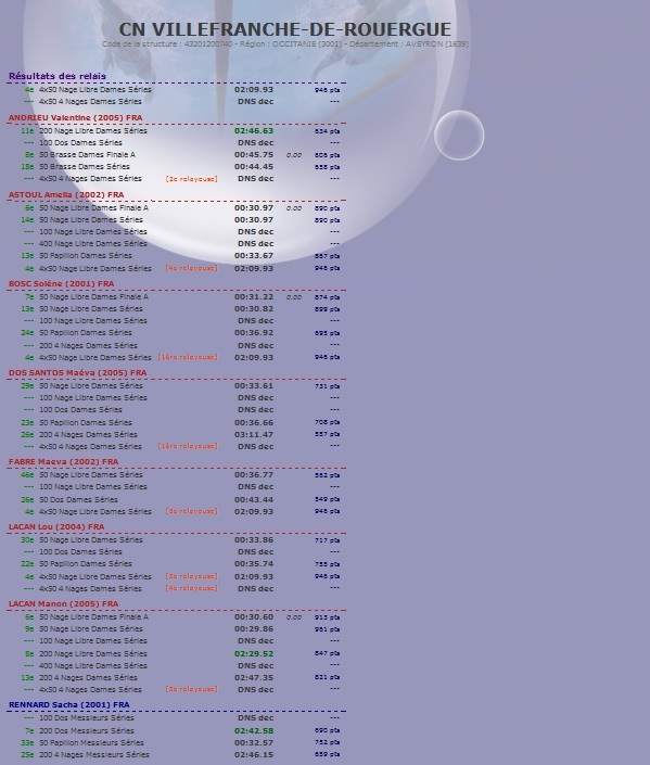 CERCLE DES NAGEURS VILLEFRANCHOIS